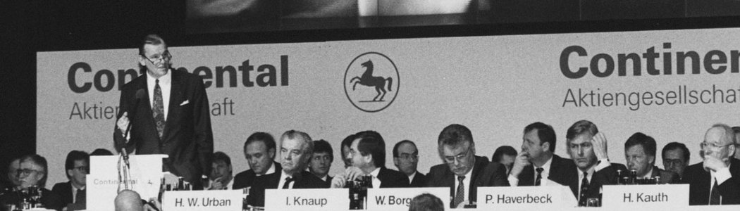 They guided the company through its biggest and longest crisis to date: the appreciation of the deutschmark’s value promoted the import of inexpensive tires, while at the same time the company struggled to overcome a technological deficit in steel belted tires as well as a macroeconomic downturn. This led to a massive collapse in demand. For the first time in its company’s history, Continental had to post deficit figures in the double-digit million range. Herrhausen and Hahn pursued their goal of leading Continental out of the crisis. They did so with a mix of industrial policy plans, which can even be described as desperate restructuring attempts that they stubbornly pursued, and a bold forward strategy combined with a tough reorganization policy.
