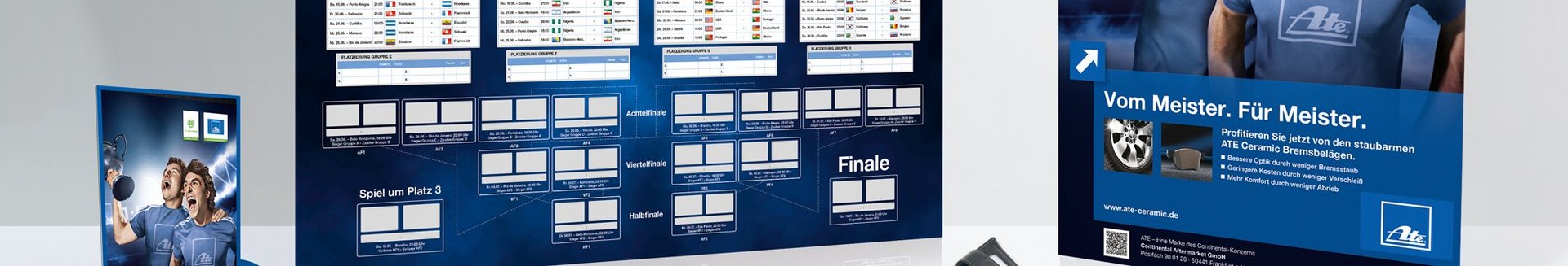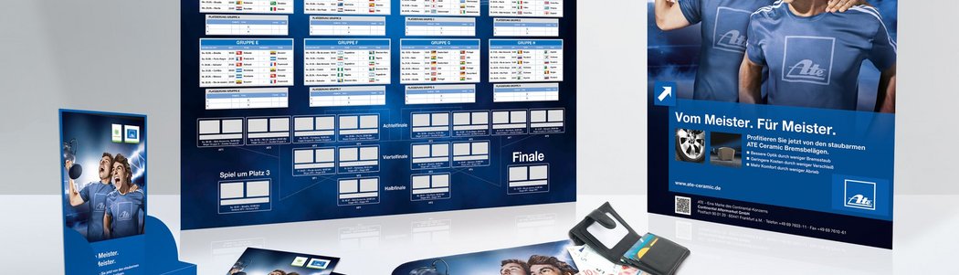 Frankfurt am Main, May 9, 2014. Soccer madness has rolled around again this year. Germany is caught up in the fever, which is why ATE has launched their sports-themed campaign „Vom Meister. Für Meister.“ (English: ‟By champions. For championsˮ), highlighting their sponsorship of VfL Wolfsburg. As in every year, ATE will provide its partner workshops with a new, high-quality package of advertising materials. It includes a countertop mat, a poster, product flyers and a flyer dispenser. But the brakes specialist hasn’t stopped at soccer-themed advertising materials: it’s also launching the virtual ATE Championship. The contest functions like a sports league: workshops can collect points and whoever has collected enough by the end of the campaign to qualify for the finals gets a chance at the grand prize. Among other prizes, the best ATE BrakeCenters will be eligible to win three VIP weekends in Wolfsburg, including hotel, a visit in the car city and three places each in the ATE box for a VfL Wolfsburg game.
