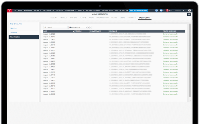 Specifically designed to help fleet managers store tachograph data, VDO TIS-Web is the ideal solution to ensure fleets comply with European legal requirements for archiving vehicle and driver data. Fleet managers can simply link their Frotcom account to their TIS-Web account.