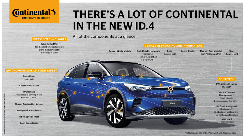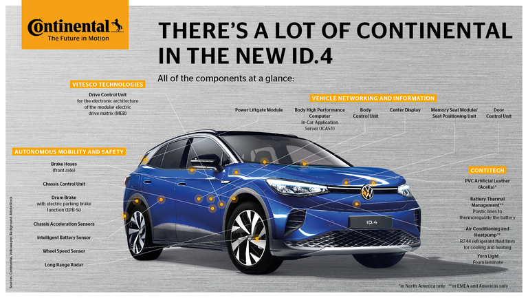 - Technology from Continental can be found in almost all systems and functions of the Volkswagen ID.4, the winner of the 2021 World Car of the Year Award
