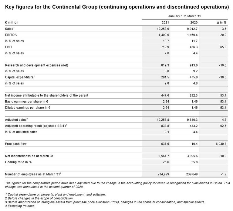 Continental is adjusting its outlook for the current fiscal year mainly due to the anticipated spin-off of Vitesco Technologies. For the continuing operations, and thus excluding Vitesco Technologies, the company expects sales of €32.5 billion to €34.5 billion and an adjusted EBIT margin of 6 to 7 percent for 2021.