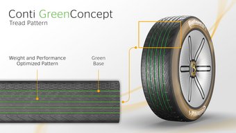 Thanks to its lightweight design, Conti GreenConcept is particularly destined for use in next-gen smart vehicles equipped with sensors and resource-saving drives. By predictively monitoring their surroundings, the sensors in such vehicles give drivers the input they need for anticipatory driving, which in turn makes it feasible to use increasingly lightweight and resource-friendly tires.
