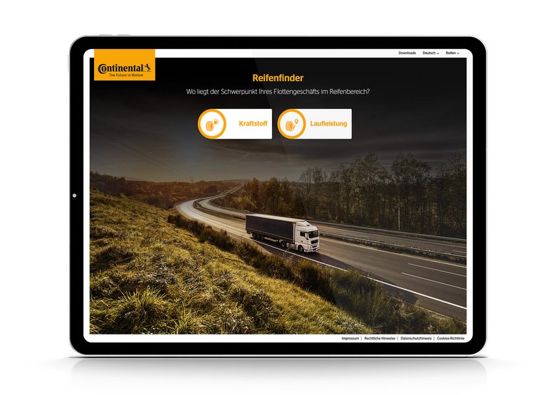 With this in mind, Continental focuses primarily on tread compounds, which need to generate low friction without negatively impacting grip or mileage. That may sound straightforward, but is far from it. Tires are impacted by various forces during a journey. Indeed, the tread and sidewall of a tire are subjected to bending, buckling and shearing. The constant deformation of a vehicle’s tires and recovery of their original form leads to energy being converted into heat in a process known as hysteresis. “This is one of the main causes of rolling resistance in tires,” explains Kaiser. “With hysteresis, energy is lost in the form of heat. Fuel has to be burned to counteract this effect and maintain the vehicle’s forward momentum.” This shows how important it is to select the right tires for the vehicle’s mission profile, and here Continental is assisting fleet managers with its Tire Finder tool.