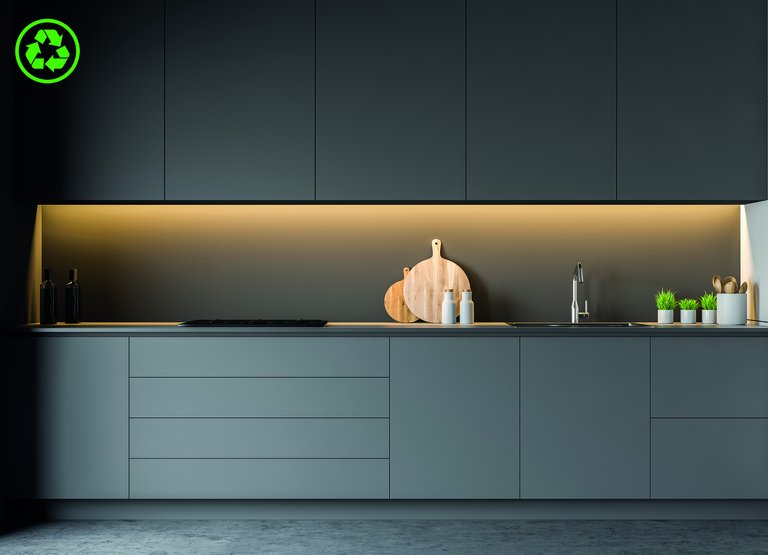 All components are REACH-compliant and phthalate-free, and the finish coatings contain no solvents and are classified as low-emission. However, it is the source materials and manufacturing processes that really make a difference in terms of sustainability. It is now common practice in the manufacture of many PET, PVC and TPO films to recycle production waste (post-industrial recycling). For skai rPureLux 2D soft, Continental also uses so-called post-consumer raw materials, in this case recyclate from used PET bottles. In addition, the manufacturing processes are energy-optimized and certified according to ISO 50001, and raw material procurement, production and finishing take place locally or regionally. The energy required for the furniture foil comes from carbon-neutral sources.