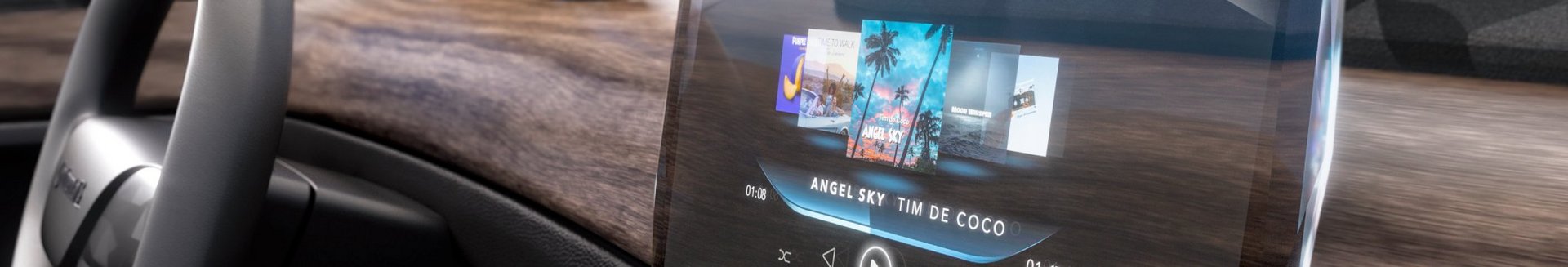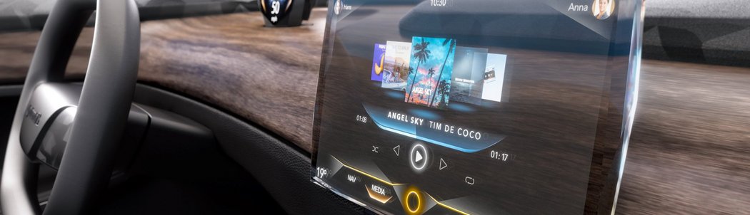 The Crystal Center Display, as the key control element, is at the heart of the operating concept and information playback. Its innovative design blurs the boundaries between technology and intuitive interaction, as the semi-transparent and floating display brings in-car virtual assistance systems to life in a way that has never been seen before. This puts interaction between human and vehicle (the so-called human-machine interface) at the heart of an emotionalized brand experience.