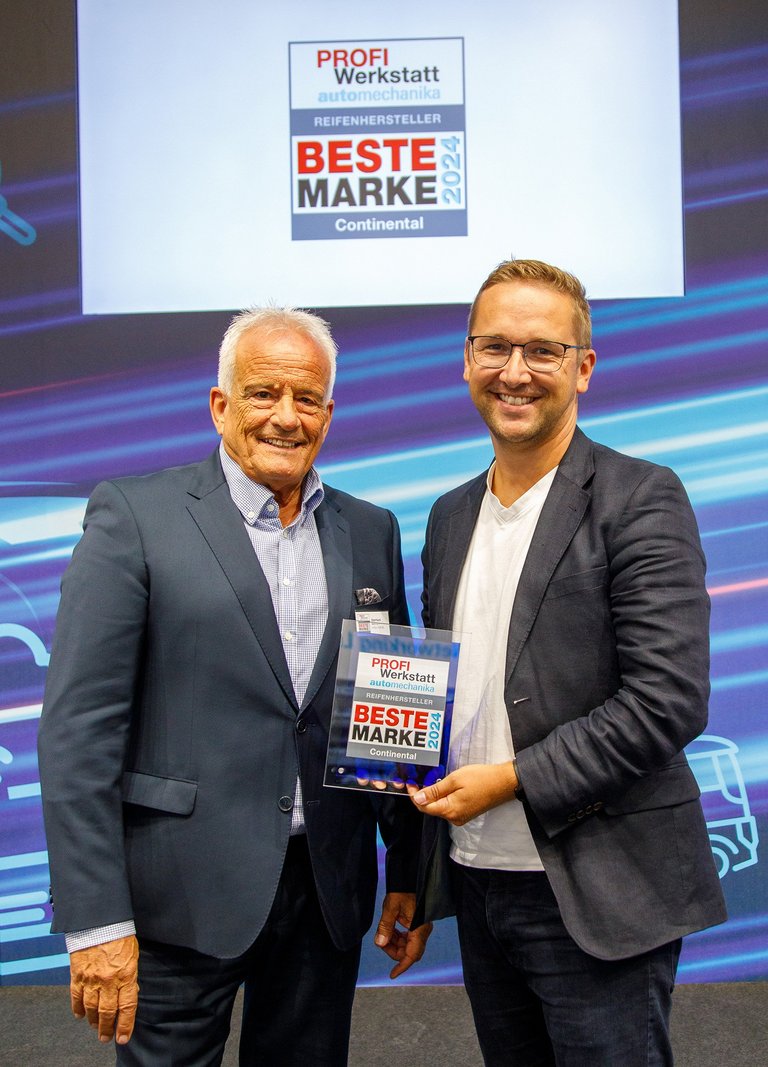 Hanover, Germany, September 12, 2024. Continental has been crowned the best workshop brand in the Tires category for the fifth time in succession by German specialist magazine "PROFI Werkstatt". The technology company once again outperformed its rivals by scoring the most votes in a representative poll of the magazine’s readers. "This award represents very pleasing recognition of our unwavering commitment to our customers," said Timo Röbbel, Head of Marketing Replacement Tires Germany. "At Continental, we are committed to quality across all areas – in our customer service, in our product quality and, above all, in our passion for our products. We are delighted to see that workshops notice this and appreciate it." Speaking during the automechanika trade fair in Frankfurt, Röbbel went on to explain how the award would motivate the team to keep striving to be the trusted and reliable partner that workshops need.