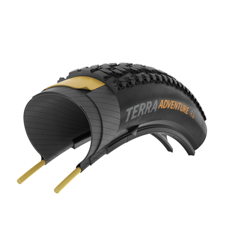 Terra Adventure is the fourth addition to the Continental Terra series, joining Terra Hardpack, Terra Speed, and Terra Trail. It is designed for riders who demand the highest levels of grip, comfort, and confidence for extreme gravel riding, while maintaining low rolling resistance and exceptional puncture protection for off-road exploration.