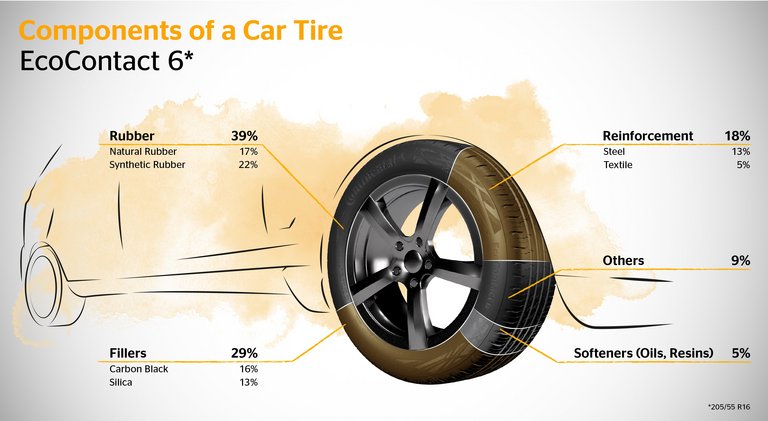 - Tire manufacturer uses synthetic rubber for example made from recycled oil