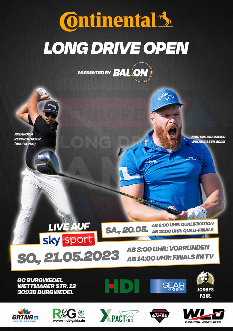 While preliminary rounds and qualifications will take place on Saturday, 20th May, and the following Sunday morning, the top 16 will compete for the title of the Continental Long Drive Open presented by BAL.ON on the afternoon of 21st May from 2pm. The four-hour title fight will be broadcast live in Germany on Sky Sport Golf and accompanied on site by Florian Bauer and Jonas Friedrich.