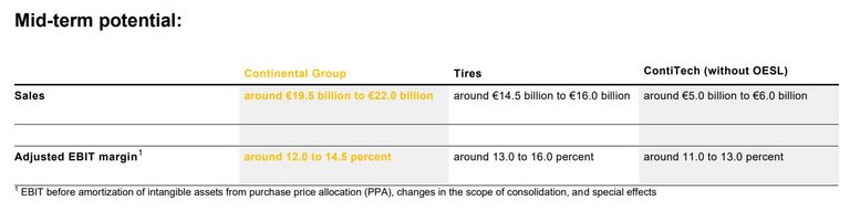 - Mid-term potential for the Continental Group: sales of around €19.5 billion to €22.0 billion and adjusted EBIT margin of around 12.0 to 14.5 percent