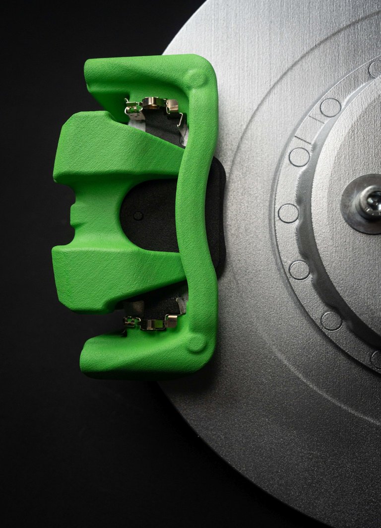 - The green fist brake calipers (Green Caliper) are more compact and lighter than those for conventional vehicles but with the same deceleration power