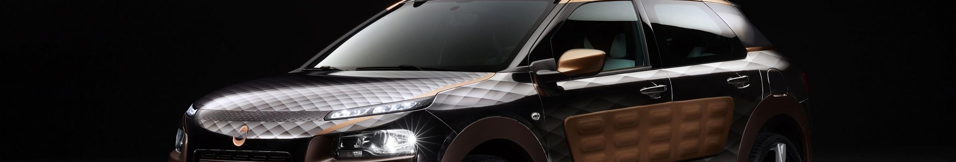 The bodywork is decorated with a mirror film which is digitally printed with a diamond structure in night gray. The special aspect of this is a double progression structure: On the one hand the color in each diamond itself shows a progression, while on the other hand the diamonds increase in size from the front to the back. The air bumpers, which are so typical of the Cactus, on the flanks as well as the front and rear are retained, but are provided with the modern design of skai® Diamond in the color copper rose, a material which was developed specifically for the vehicle and which takes up and implements the diamond theme in a different way. The accent color on the outside is highly polished copper. This is used on the roof line and on the C pillars, mirrors, at the front in the area of the fog lights and as a logo on the wheel rims.