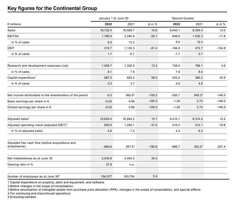 All in all, Continental still anticipates consolidated sales for the year as a whole of around €38.3 to €40.1 billion and an adjusted EBIT margin of around 4.7 to 5.7 percent. This includes additional costs of €3.5 billion as a result of the massive price increases for raw materials, semi-finished products, energy and logistics. The freight costs for a standard overseas shipping container have in some cases increased eightfold.