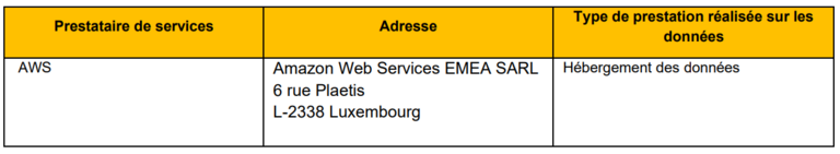 - Les sous-traitants qui interviennent dans le cadre des traitements de données susmentionnés :
