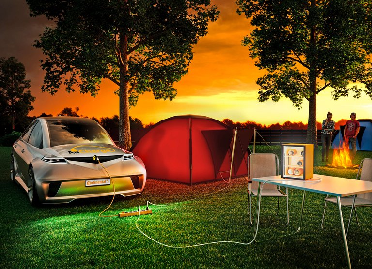 相比燃油车,电动车的优点除了最为明显的减排以外,由于使用电池,电动车还能作为一种大功率的移动能源使用。比如,野营时,电动车可为笔记本电脑、冰箱等电气设备提供230V的交流电。对于在建筑工地上作业的小型承包商亦或移动服务提供商来说,电动车的这种“移动储能”功能也是一种加成。在未来,电动车也许可以被建设成并网移动电力站,在人类向可再生能源转型的过程中发挥其作用。为实现这些功能,充电系统不仅需要能够为电池充电,还必须能够在必要时将储存在电池中的电能回馈给电网。大陆集团的“万能充”充电系统已集成这一双向输电功能。